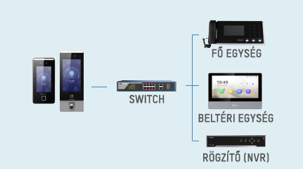 Az IP65 védettség miatt a terminálokat egy IP alapú Hikvision beltéri videó-kaputelefon egységgel összekötve kaputelefonként is tudjuk használni. Hikvision NVR rögzítővel összekötve a kamera képét is rögzíteni tudjuk.